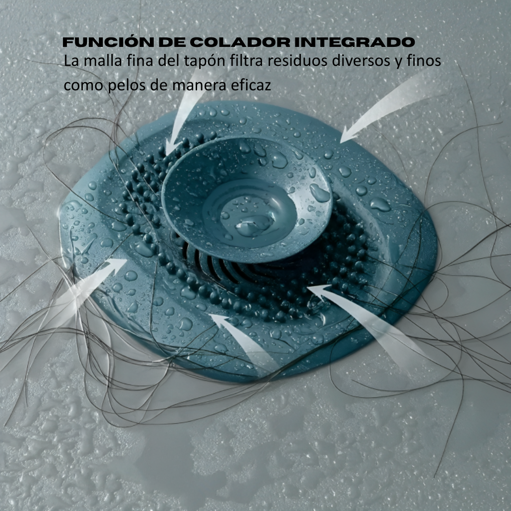 Con solo un clikc, este tapón de drenaje se convierte en un práctico colador que atrapa todos los pelos y residuos, evitando atascos. Además, se limpia de forma rápida y sencilla, manteniendo tu desagüe siempre libre